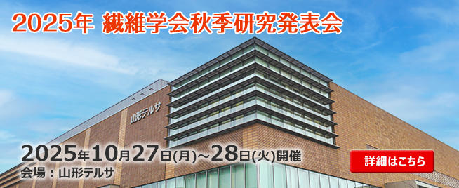 繊維学会年次大会 2026年6月17日-19日 繊維学会秋季大会 2025年10月27日-28日 夏季セミナー 2026年9月10日-11日 繊維応用講座 2026年1月30日 繊維基礎講座 本年度は終了いたしました 繊維技術講座 中止のお知らせ 高校生研究発表会 2025年11月15日